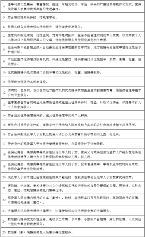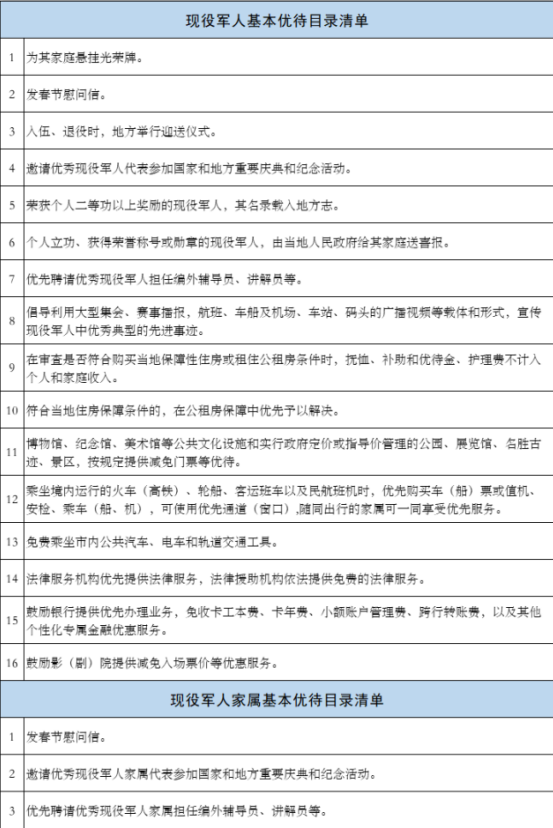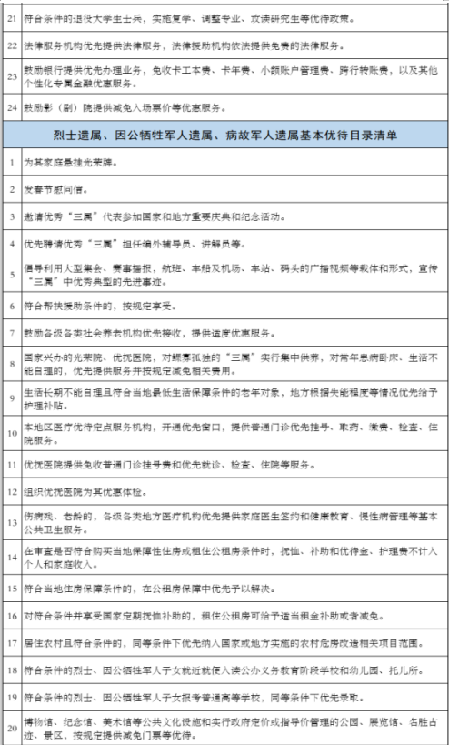 附件:軍人軍屬、退役軍人和其他優(yōu)撫對(duì)象基本優(yōu)待目錄清單