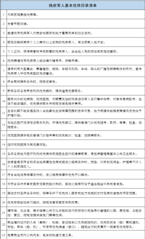 附件 軍人軍屬、退役軍人和其他優(yōu)撫對(duì)象基本優(yōu)待目錄清單